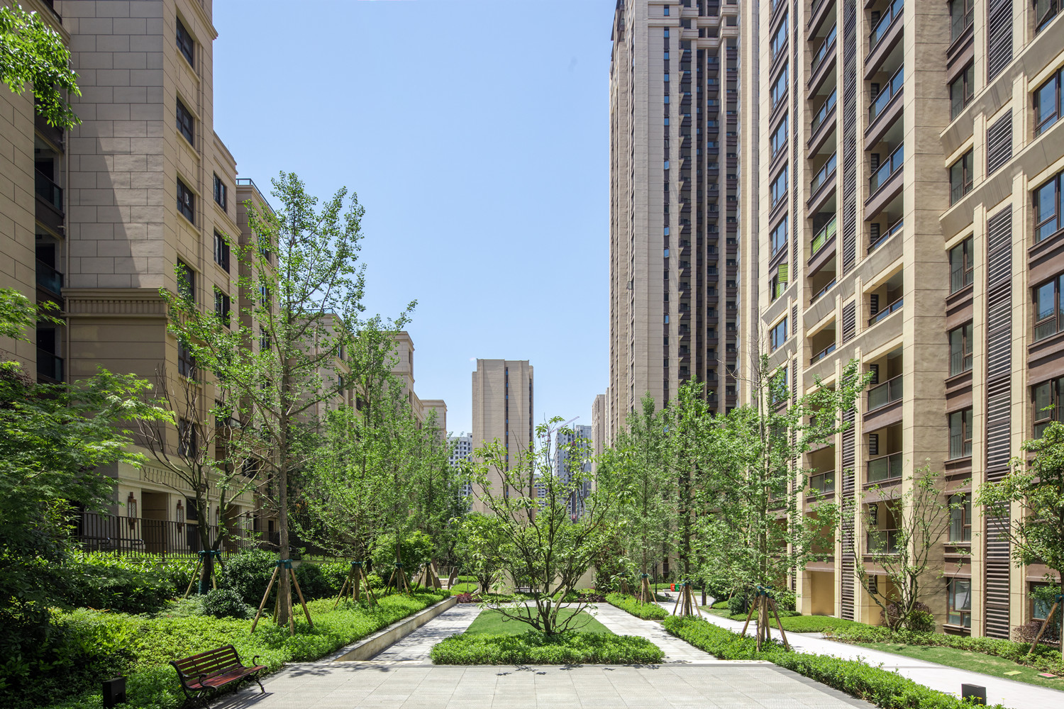 項(xiàng)目總體量約44萬(wàn)方,容積率2.77,綠化率35%,以“社區(qū)是中央公園的延伸,生活在中央銘著就是生活在中央公園”的理念打造整個(gè)項(xiàng)目。