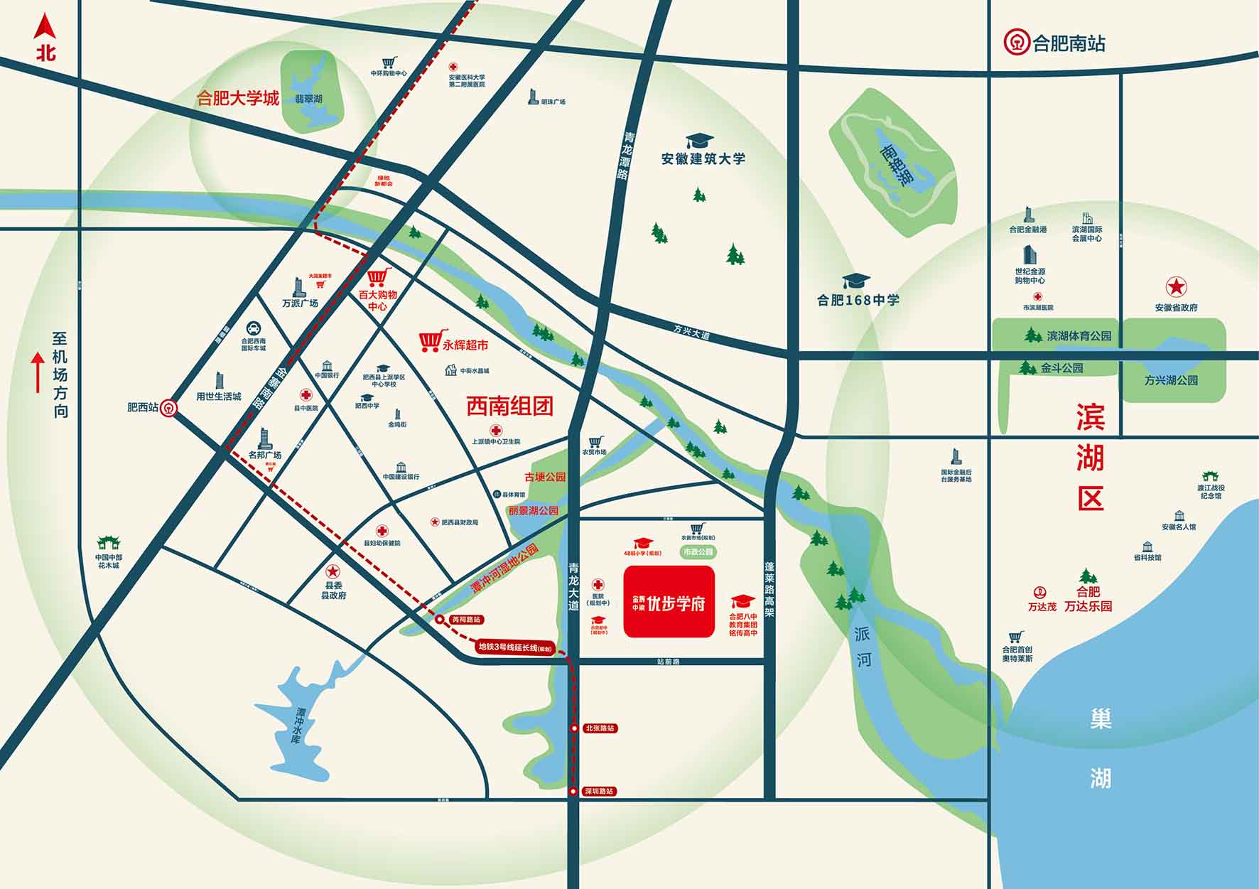 優步學府通過優出行、優產品、優服務、優成長、優格調、優鄰里、優資源開啟合肥優步時代。項目緊鄰地鐵三號線延長線,一站式生活通達全城;坐享麗景湖公園、古梗公園、潭沖河濕地公園三園環繞的天然生態美景,24小時鮮氧循環;幼兒園、小學、初中、高中12年優質教育資源環伺;項目景觀設計從業主切身體驗出發,打造“輕奢”現代簡約,雅致居所,社區中心配有室外中央會客廳、全齡段親子體驗區,老年活動廣場,兒童活動中心等,品質生活,優人一步;金輝物業國家一級資質物業,為生活保駕護航;